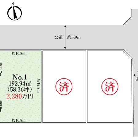 No.1区画 2,280万円 192.94㎡(約58.36坪)