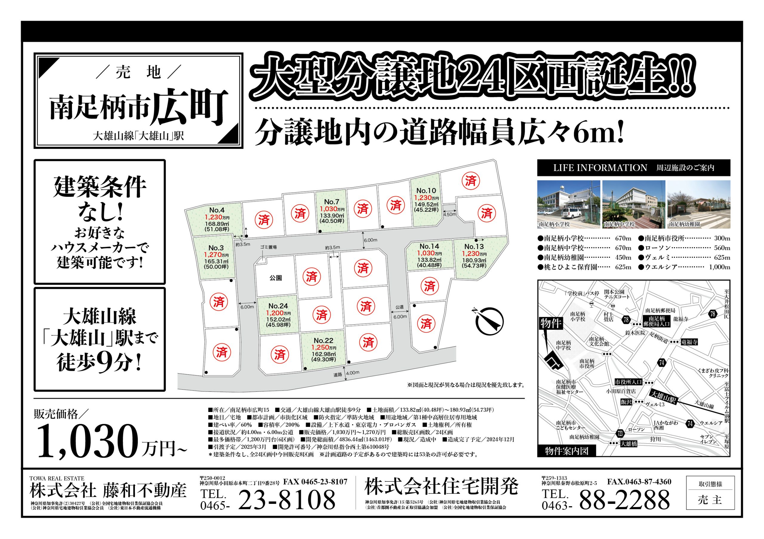 値下げ物件情報 南足柄市広町 売地 残8区画