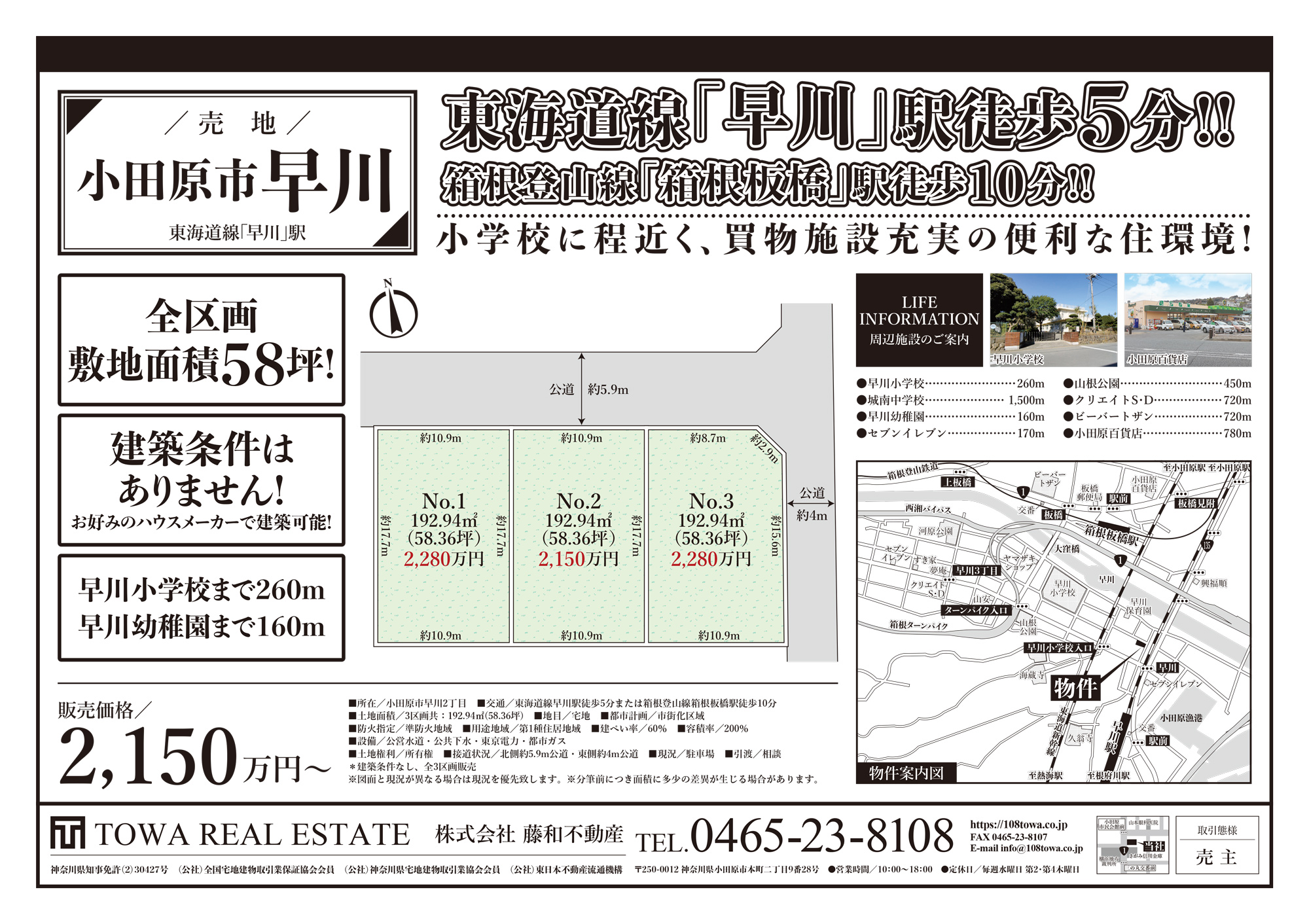 10月4日に 新物件情報 小田原市早川 売地 総販売区画数3区画の情報を追加いたしました。