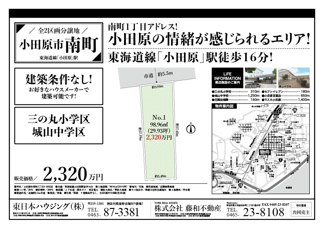東海道線「小田原」駅から徒歩16分 No.1区画 2,320万円 98.96㎡(29.93坪)
