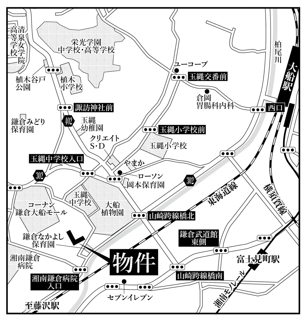 【ライフインフォメーション】 ・コーナン鎌倉大船モールまで徒歩9分 ・湘南鎌倉総合病院まで徒歩7分 ・玉縄小学校まで徒歩12分 ・玉縄中学校まで徒歩3分