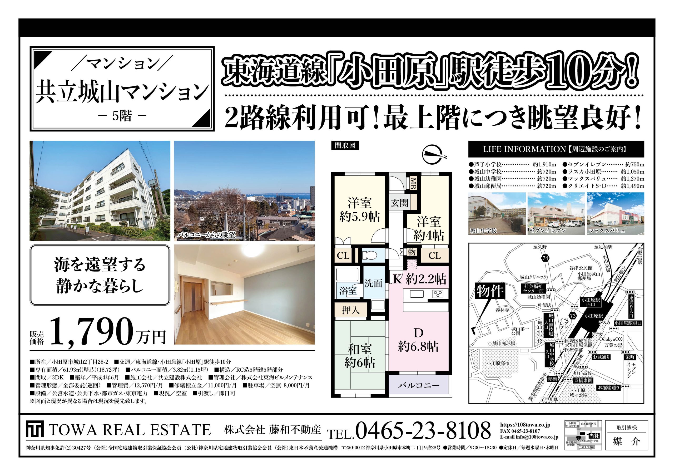 東海道線「小田原」駅徒歩12分! 1,790万円 3LDK 専用面積61.93㎡(18.72坪)バルコニー面積3.82㎡(1.15坪)
