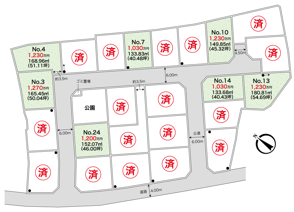 西側約4.0m公道に接する、分譲地内6.00m公道に接する