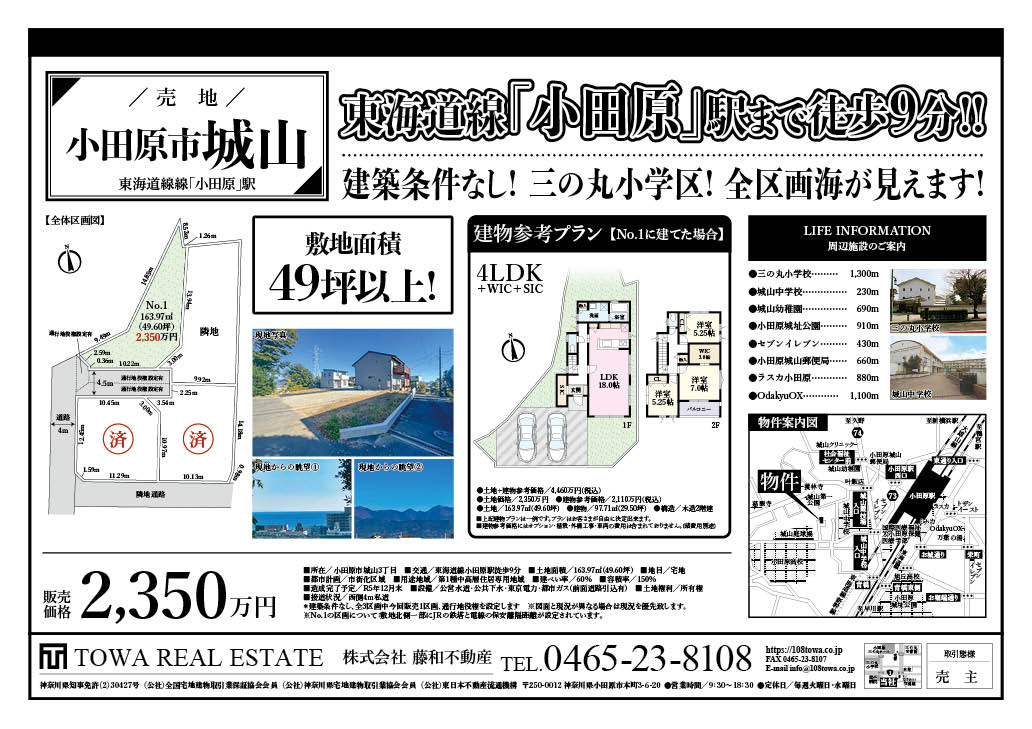 No.1区画 2,350万円 163.97㎡(49.60坪) 東海道線「小田原」駅から徒歩9分