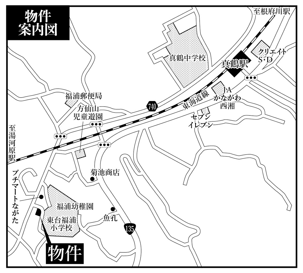 【ライフインフォメーション】 ●小田原百貨店真鶴店・・・1434m ●セブンイレブン真鶴駅西店・・・618m ●クリエイトエス・ディー真鶴駅前店・・・856m ●湯河原町立福浦幼稚園・・・662m ●湯河原町立東台福浦小学校・・・807m ●真鶴町立真鶴中学校・・・520m
