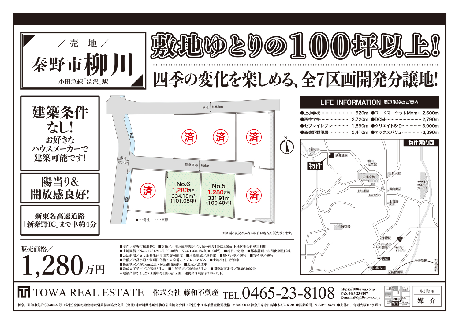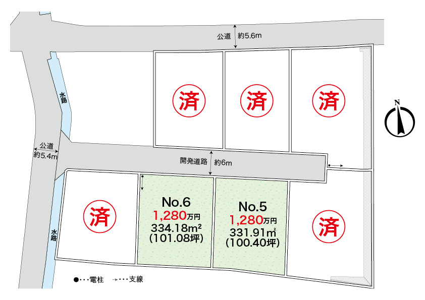 No.5 331.91㎡(約100.40坪) No.6 334.18㎡(約101.08坪)